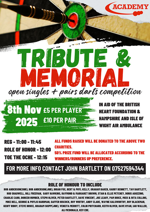 8th- October- Tribute & Memorial Darts