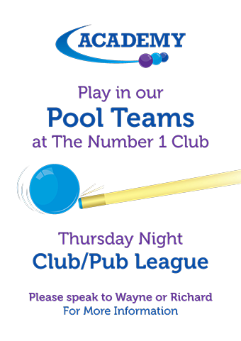 Thursday night we have pool Teams – Club and Pub League