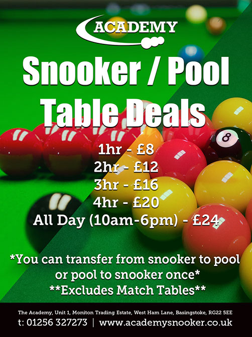 All Day Deal for Snooker Match Tables Only - 10am till 6pm with no transfers - £40